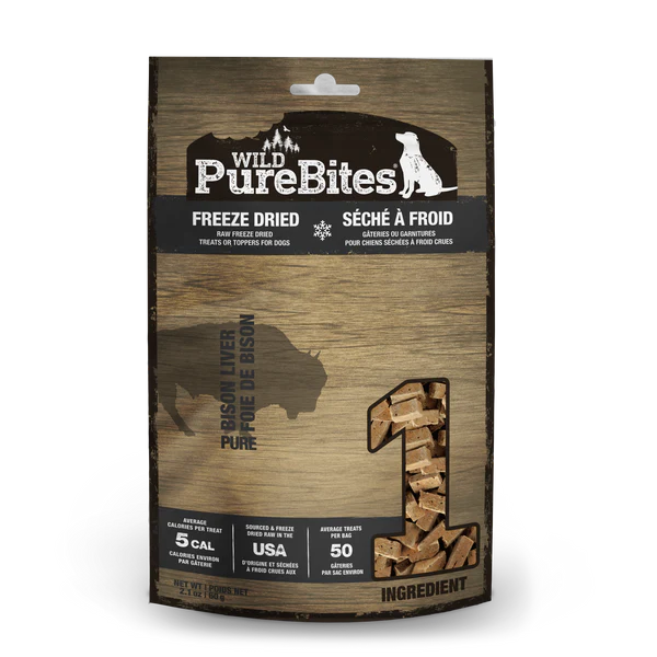 - Allez-y, découvrez nos ingrédients ; Nos Wild PureBites sont préparées avec 1 seul ingrédient simple et exotique de qualité humaine : du foie de bison pur à 100 %, élevé et séché à froid aux États-Unis, puis emballés et perfectionnés dans notre propre cuisine canadienne. Servez-les comme gâterie, garniture ou récompense au dressage à haute valeur ajoutée pour votre chien.